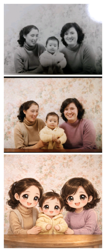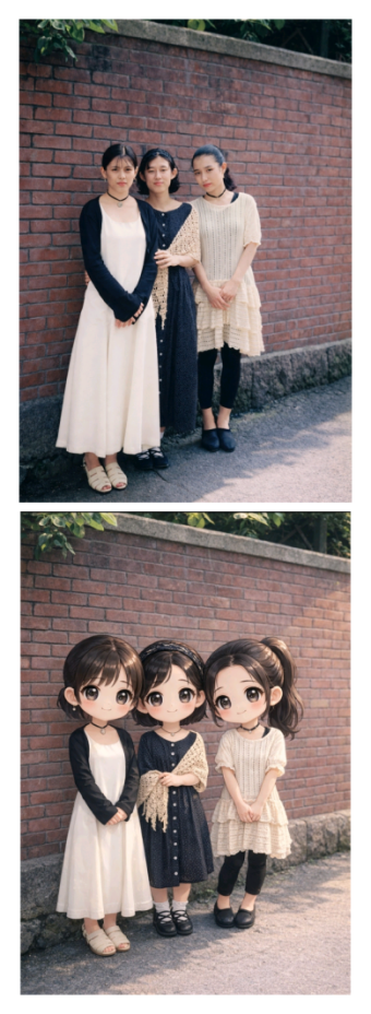 freee●20数年前の三姉妹をチビキャラにAI加工