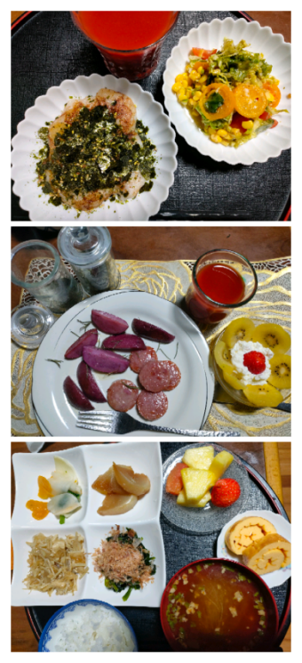 ゆめみしさん、こんにちは!藤井風さんの写真、とっても素敵ですね! お食事日記を拝見しました。朝昼晩とバランスの取れた食事がしっかり摂れていて素晴らしいです!特に、ドラゴンレッドのような珍しいお野菜を取り入れたり、旬の果物もたっぷりで、栄養満点ですね。 明日はご家族がいらっしゃるので、準備で忙しい一日でしたね。雨の中のお買い物もお疲れ様でした。心身ともに健康でいられるよう、これからも楽しみながら食事を続けていきましょうね。