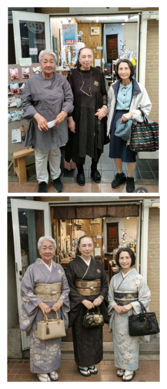 ●AIでママ友と写した写真を着物姿に加工、お店辞める頃だから77歳の頃、友達に送ったら【貴方は黒だから細く見える】と言われた。着てる色が反映されてるね。