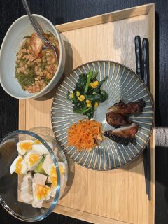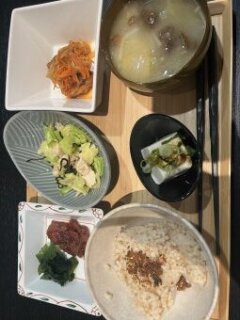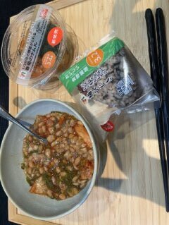 ◆昼食:梅ひじきおにぎり、ナムル、めかぶ納豆キムチ